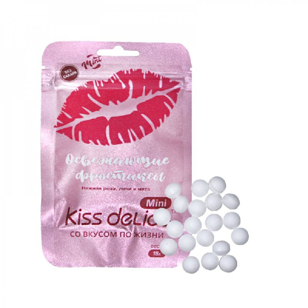 | Аромат/вкусРоза, личи и мята | Без сахараДа | БрендKiss Delice |